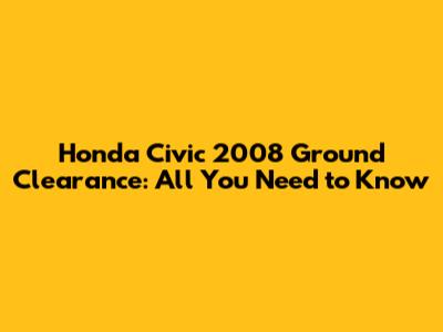 Honda Civic 2008 Ground Clearance: What You Need To Know