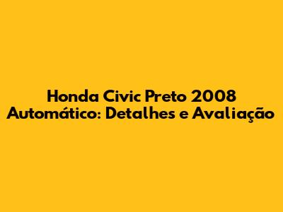 Honda Civic Preto 2008 Automático: Detalhes E Avaliação