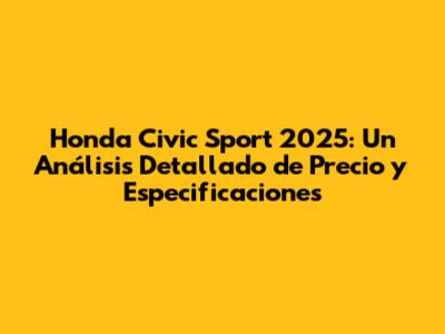 ¡Hola a todos los entusiastas de los coches! Si están buscando información sobre el Honda Civic Sport 2025, han llegado al lugar correcto. En este artículo, vamos a sumergirnos en todos los detalles relevantes: desde el precio estimado del Honda Civic Sport 2025, pasando por sus características más destacadas, hasta lo que pueden esperar en términos de rendimiento y diseño. Prepárense para una guía completa que les ayudará a tomar la mejor decisión de compra. ¡Empecemos!