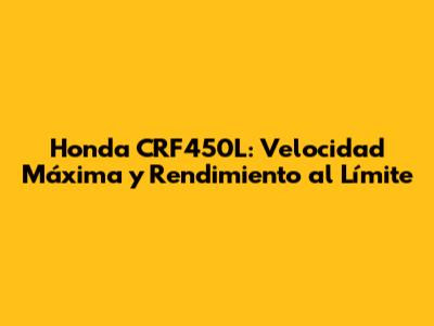 Honda CRF450L: Velocidad Máxima Y Rendimiento Al Límite