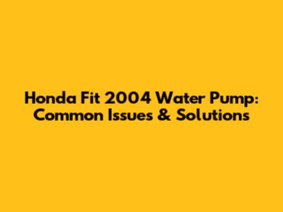 Honda Fit 2004 Water Pump: Common Issues & Solutions