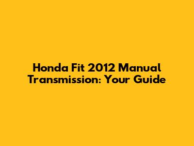 Honda Fit 2012 Manual Transmission: Your Guide
