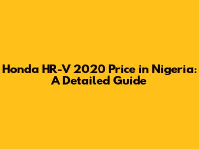 Honda HR-V 2020 Price In Nigeria: A Detailed Guide