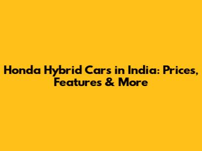 Honda Hybrid Cars In India: Prices & Features