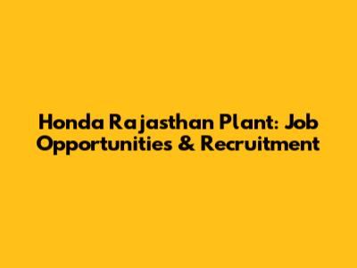 Honda Rajasthan Plant: Job Opportunities & Recruitment