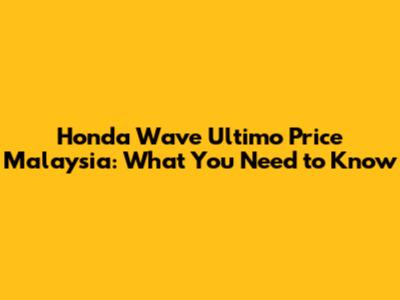 Honda Wave Ultimo Price Malaysia: What You Need To Know