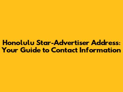 Hey everyone! If you're looking for the Honolulu Star-Advertiser address, you've come to the right place! We'll dive deep into everything you need to know about contacting this awesome local news source. Whether you're a long-time subscriber, a curious reader, or someone with a story to share, knowing how to reach the Star-Advertiser is super helpful. We'll cover everything from their main address to contact information for specific departments, making sure you have all the tools you need at your fingertips. So, let's get started and make sure you're well-equipped to connect with the Honolulu Star-Advertiser. We will talk about their physical address, how to reach out to different departments, and other useful tips.