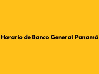 Horario De Banco General Panamá