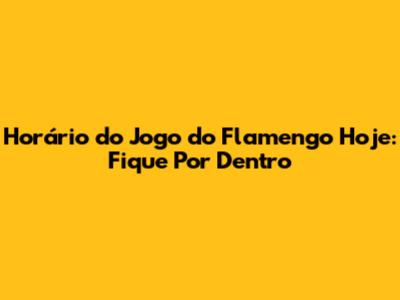 Horário Do Jogo Do Flamengo Hoje