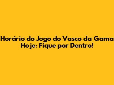 Horário Do Jogo Do Vasco Da Gama Hoje