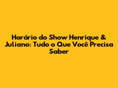 Horário Do Show Henrique & Juliano: Descubra Quando Começa!