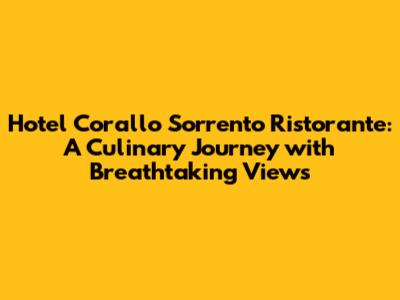 Welcome, fellow food enthusiasts and travel aficionados! If you're planning a trip to the stunning Sorrento, Italy, and have a penchant for exquisite dining experiences, then allow me to introduce you to a gem that perfectly blends culinary excellence with unparalleled panoramic views: the Hotel Corallo Sorrento Ristorante. This isn't just a restaurant; it's an experience that tantalizes your taste buds while captivating your senses with the beauty of the Amalfi Coast.