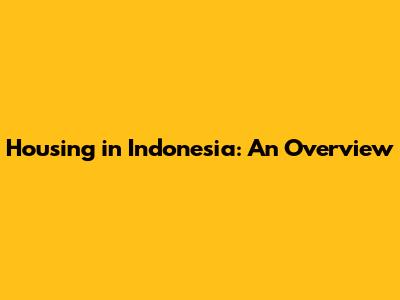Housing In Indonesia: An Overview