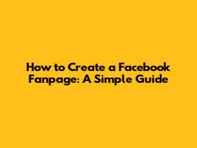 How To Create A Facebook Fanpage: A Simple Guide