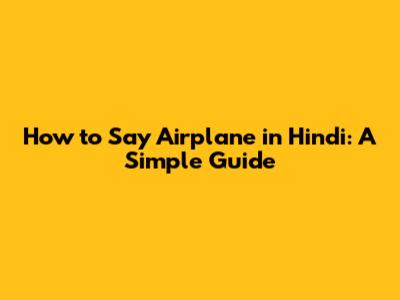 How To Say Airplane In Hindi: A Simple Guide