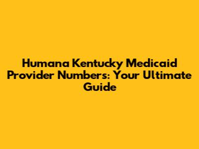 Humana Kentucky Medicaid Provider Numbers: A Comprehensive Guide