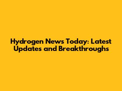 Hydrogen News Today: Latest Updates And Breakthroughs