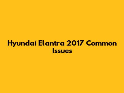 Hyundai Elantra 2017 Common Issues