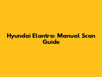 Hyundai Elantra: Manual Scan Guide