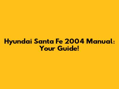Hyundai Santa Fe 2004 Manual: Your Guide!