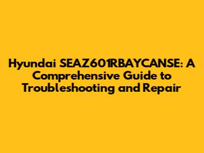 Hey guys! Let's dive into the Hyundai SEAZ601RBAYCANSE, a model that might be giving you a bit of a headache. Whether you're facing a minor glitch or a major malfunction, this guide is designed to help you understand, troubleshoot, and hopefully, fix the issues you're experiencing. We'll cover everything from common problems and their solutions to more in-depth repair strategies. So, buckle up, grab your tools (maybe!), and let's get started.