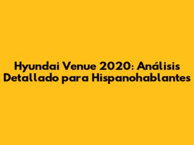 Hyundai Venue 2020: Análisis Detallado Para Hispanohablantes