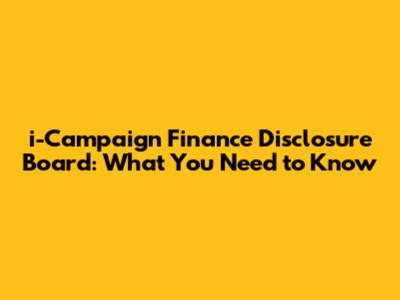 I-Campaign Finance Disclosure Board: What You Need To Know