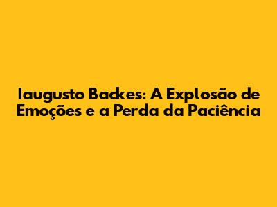 Iaugusto Backes: Perda De Paciência E Reações Explosivas
