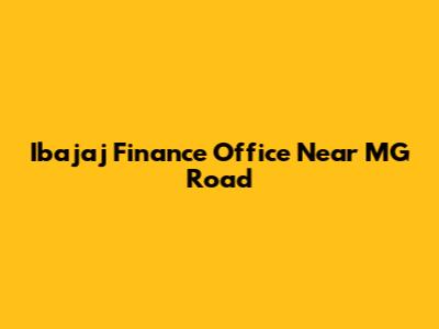 Ibajaj Finance Office Near MG Road: Find It Here!