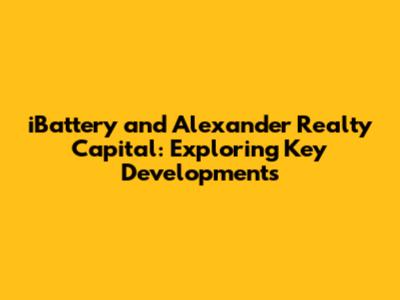 IBattery & Alexander Realty Capital: Latest Updates