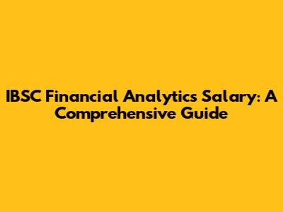 IBSC Financial Analytics Salary: What You Need To Know