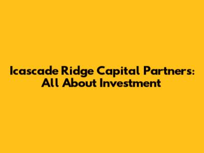 Icascade Ridge Capital Partners: All About Investment