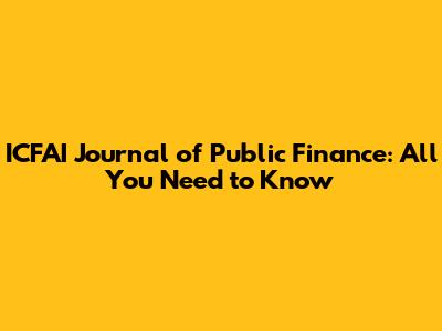 ICFAI Journal Of Public Finance: All You Need To Know