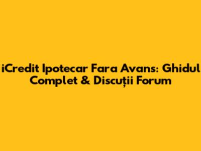 ICredit Ipotecar Fara Avans: Ghid Complet & Forum Detaliat