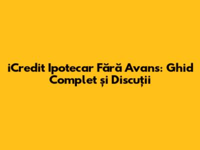 ICredit Ipotecar Fără Avans: Ghid Complet Și Discuții