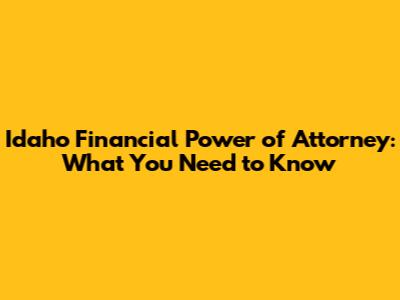 Idaho Financial Power Of Attorney: What You Need To Know