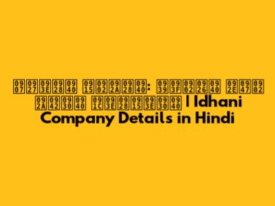इधानी कंपनी: हिंदी में पूरी जानकारी | Idhani Company Details In Hindi