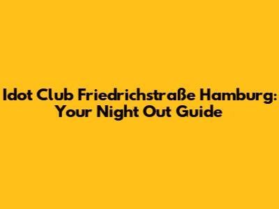 Hey guys! Let's talk about a spot in Hamburg that's been buzzing: Idot Club on Friedrichstraße. If you're looking for a night out that's a bit different, a bit edgy, and definitely memorable, you've landed in the right place. We're going to dive deep into what makes Idot Club a unique destination in Hamburg's vibrant nightlife scene. From the music to the atmosphere, and of course, what kind of crowd to expect, we've got you covered. Get ready to discover why this club is a must-visit for anyone wanting to experience Hamburg's alternative clubbing vibes.