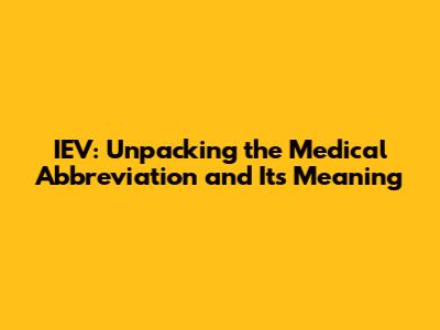 IEV: Unpacking The Medical Abbreviation And Its Meaning