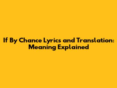 If By Chance Lyrics And Translation: Meaning Explained