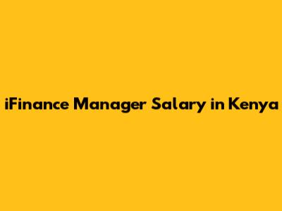 • Entry-Level iFinance Manager: KES 80,000 - KES 150,000 per month.