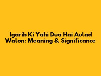 Igarib Ki Yahi Dua Hai Aulad Walon: Meaning & Significance