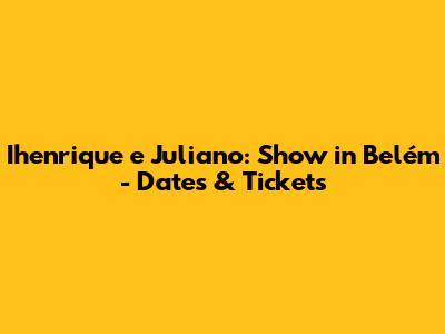 Ihenrique E Juliano: Show In Belém - Dates & Tickets