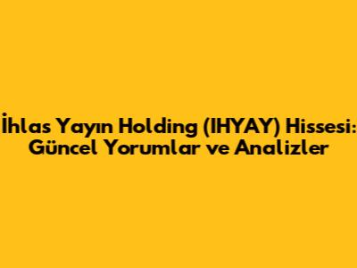 Piyasa Takibi: IHYAY hissesi hakkında güncel haberleri, analizleri ve yorumları takip etmek, yatırım kararlarınızı destekleyebilir. Borsa İstanbul'un (BIST) resmi web sitesi, finans haber siteleri, yatırımcı platformları ve sosyal medya, IHYAY hissesi ile ilgili güncel bilgilere ulaşabileceğiniz kaynaklardır. Ancak, bilgi kirliliğine karşı dikkatli olmak ve güvenilir kaynaklardan bilgi edinmek gerekiyor.