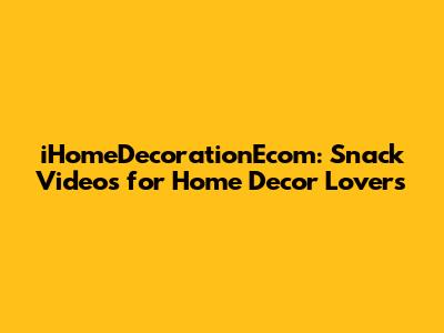 IHomeDecorationEcom: Snack Videos For Home Decor Lovers