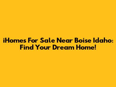 Are you dreaming of owning an iHome near Boise, Idaho? You're in the right place! Finding the perfect home can be an exciting journey, and when you're looking for iHomes for sale near Boise, Idaho, there are a few key things to keep in mind. Let’s dive into the world of Boise real estate and explore how you can find your dream home.
