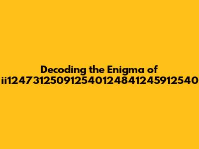Ii124731250912540124841245912540: Decoding The Enigma