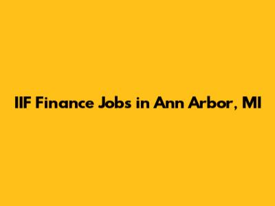 IIF Finance Jobs In Ann Arbor, MI
