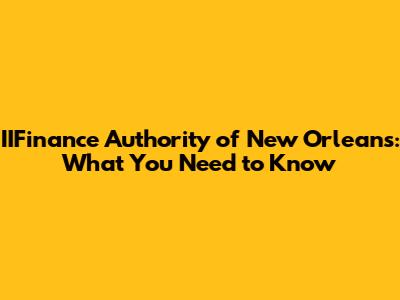 IIFinance Authority Of New Orleans: What You Need To Know