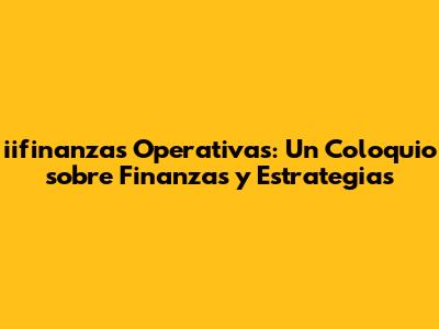 Iifinanzas Operativas: Un Coloquio Sobre Finanzas Y Estrategias